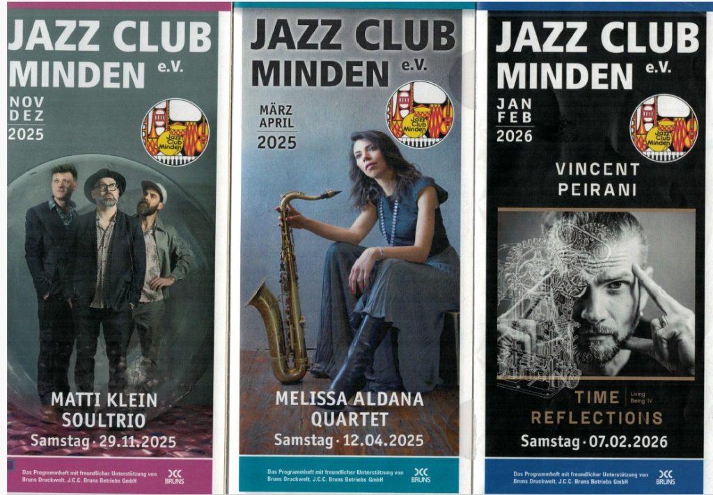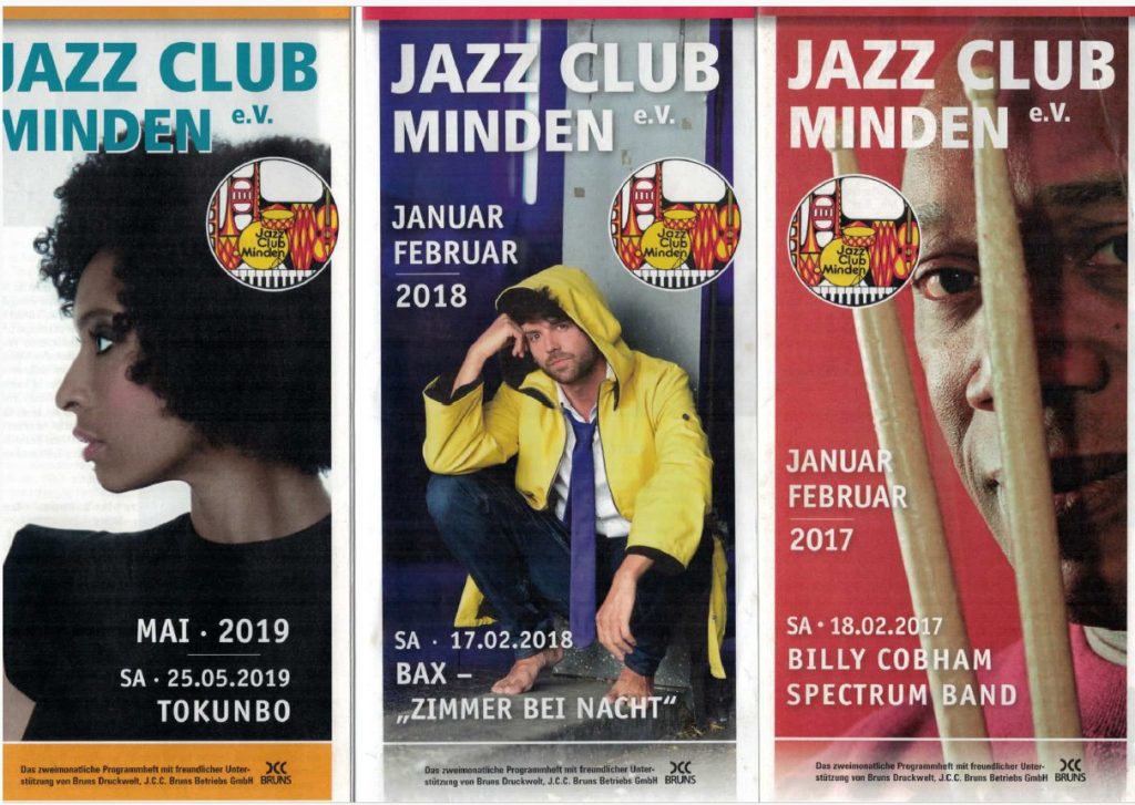 Wie kürzlich den heimischen Medien zu entnehmen war, wird die Firma J.C.C. Bruns, seit jeher auch einer unserer treuesten Sponsoren, in Kürze ihre Druck-Aktivitäten einstellen. Damit verliert Minden nicht nur eine ehrwürdige Drucktradition (seit 1834), sondern wir als Jazz Club auch einen langjährigen Dienstleister (als Sponsor will uns das Unternehmen weiterhin zur Seite stehen). Konkret betrifft das vor allem unsere seit vielen Jahren laufenden Druckaufträge für die Faltblätter mit dem Zwei-Monats-Programm sowie die Plakate mit den Monats-Vorschauen.
