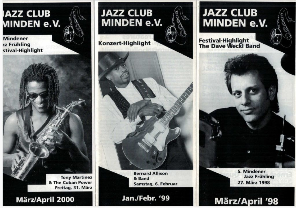 Wer in den Lose-Blätter-Sammlungen der Archivbestände schnuppert, erhält einen eindrucksvollen Querschnitt durch das Club-Programm der letzten Jahrzehnte. Und staunt immer wieder über große Namen der internationalen Jazz-Szene, die es auf die Kellerbühne am Königswall zog – oft auch als Sidemen. Um nur wenige zu nennen: James Blood Ulmer, Alphonse Mouzon, Kurzt Elling, Archie Shepp, Javon Jackson, Nils Landgrens Funk Unit,Mark Whitfield, Rebekka Bakken, Vincent Herring,Jiseph Bowie, Spyro Gyra, Gitte Haenning, Hiram Bullock, Candy Dulfer. Und und und…,