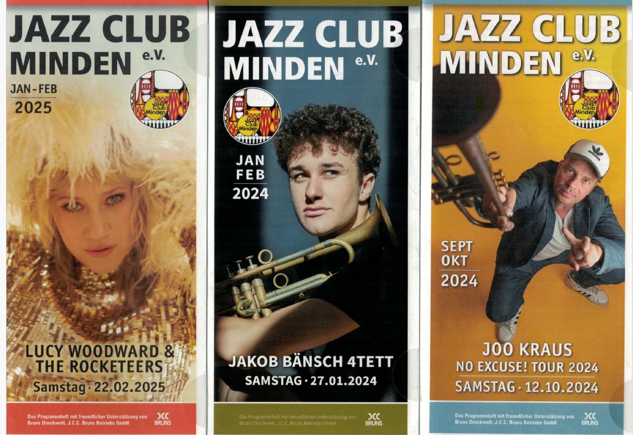 Wie kürzlich den heimischen Medien zu entnehmen war, wird die Firma J.C.C. Bruns, seit jeher auch einer unserer treuesten Sponsoren, in Kürze ihre Druck-Aktivitäten einstellen. Damit verliert Minden nicht nur eine ehrwürdige Drucktradition (seit 1834), sondern wir als Jazz Club auch einen langjährigen Dienstleister (als Sponsor will uns das Unternehmen weiterhin zur Seite stehen). Konkret betrifft das vor allem unsere seit vielen Jahren laufenden Druckaufträge für die Faltblätter mit dem Zwei-Monats-Programm sowie die Plakate mit den Monats-Vorschauen.