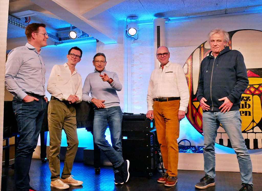 Der aktuelle Vorstand des Jazz Club Minden (v.l.n.r.): Ulrich Rosemeier (Beisitzer), Matthias Niemann (Vorsitzender), Christoph Pepper (stv. Vorsitzender), Reinhard Lafferthon (Geschäftsführer), Peter Ludwig (Beisitzer). Foto: Frank Thamm